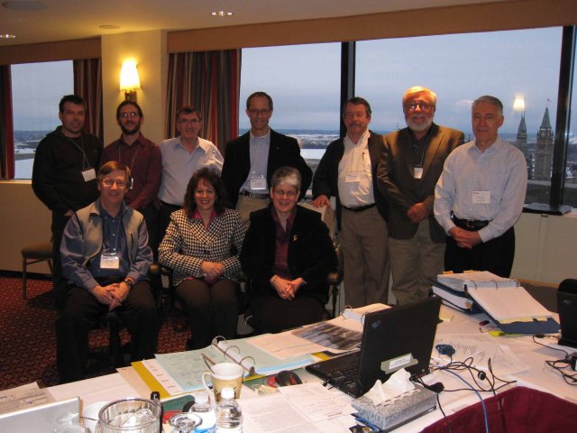 Back row (from left to right): Yvan Bédard – Laval University; Alan Clayton - University of Manitoba; Ion Corbu - Corbu Consulting Inc., ON; Peter Steffler - University of Alberta; Graham Gagnon - Dalhousie University, Chair of the Committee; Louis Crépeau - Teknika HBA, QC; Michel Julien - Golder Associates Ltd, QC; Alan Russell - University of British Columbia; Arun Valsangkar - University of New Brunswick; Hanping Hong - University of Western Ontario.