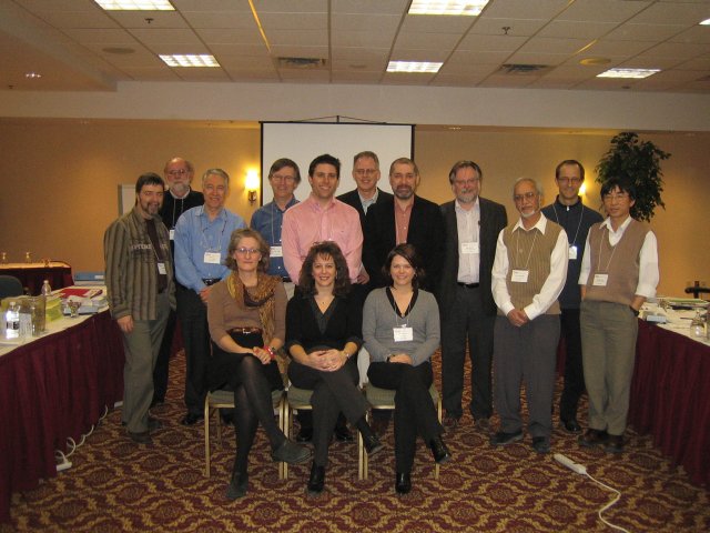 Back row (from left to right): Bruno Bussière – Université du Québec en Abitibi – Témiscaminque; Robert Leconte – l'École de Technologie Supérieure, Montréal; Peter Huck - University of Waterloo; Yves Comeau – École Polytechnique de Montréal; Ed McBean – University of Guelph; Scott MacKnight – Land and Sea Environmental, Halifax; Ion Corbu - Corbu Consulting Inc., ON.